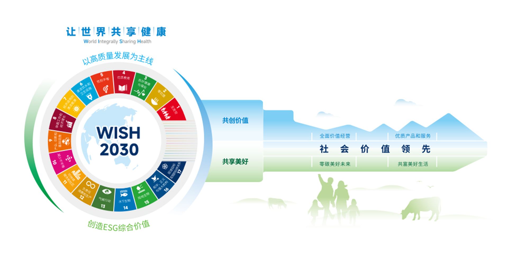 從“責(zé)任的力量”到“‘WISH 2030’金鑰匙可持續(xù)發(fā)展體系”,時刻展現(xiàn)伊利堅持“讓世界共享健康”的宏偉目標